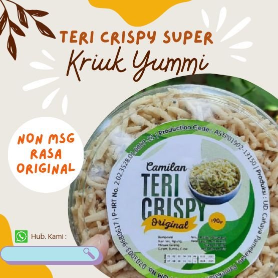 Teri Crispy Super adalah olahan ikan teri pilihan dengan tekstur super renyah dan rasa gurih alami, dikemas dalam toples praktis dan higienis. Cocok sebagai cemilan sehat, lauk pendamping keluarga, bekal traveling, hingga pilihan souvenir yang praktis dan bernilai jual tinggi.